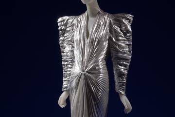Pour montrer les changements d’époque et de mode, une robe de Madame Grès datant de 1980, aux manches drapées et surdimensionnées, est présentée à côté d'une robe de LaQuan Smith, conçue au printemps 2022, qui combine le drapé et la manche bouffante pour créer une silhouette tout à fait contemporaine.