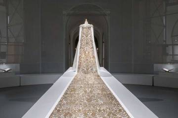 La pièce symbole de l'exposition "Manus x Machina: Fashion in an Age of Technology" est une robe de mariée brodée de 2014, de Karl Lagerfeld pour Chanel, avec une traîne de 6 mètres de long. Parmi les créateurs exposés figurent Cristobal Balenciaga, les soeurs Boué, Thom Browne, Sarah Burton (Alexander McQueen), Pierre Cardin, Gabrielle "Coco"
