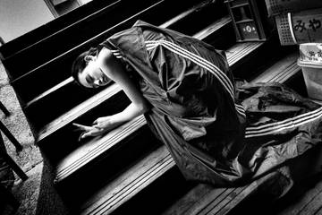 « Les trois bandes sont si charmantes et en même temps si fortes. Dans le noir, mettre trois bandes blanches, c'est très fort. J'ai été enthousiasmé par cela », explique Yohji Yamamoto.