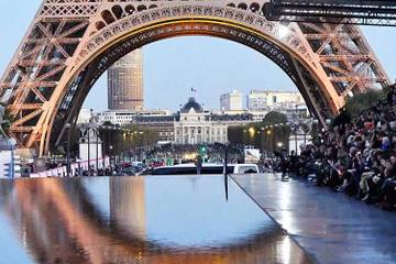 Au pied de la tour Eiffel, les mannequins marchent sur l'eau chez Saint Laurent