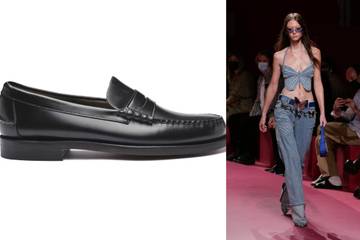 Ses origines preppy lui infusent une aura classique et en ont fait un basique du vestiaire féminin comme masculin. Le mocassin est depuis plusieurs saisons revisité de multiples façons : orné de chaînes ou posé sur une épaisse semelle. Pour l’été 2022, beaucoup de griffes en avaient chaussé leur modèle en optant pour une version sage et basique afin d’assagir une tenue ou pour jouer la version preppy (Miu Miu, Margaret Howell), tandis que d’autres l’utilisaient en version plate mais teintée de couleurs pop (Marni).
