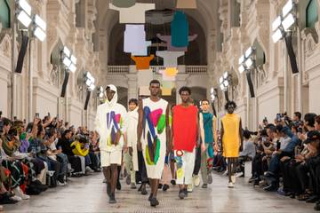 Une fois les vêtements à l'intérieur du rouleau plissé révélés, l'équipe de design est arrivé sur scène pour habiller les mannequins. Le défilé a offert un festival de couleurs lumineuses avec du orange, décliné en plusieurs nuances, en vedette.