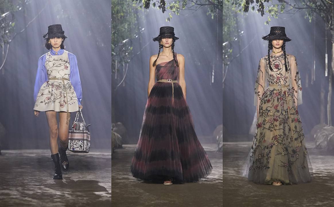 Dans la continuité du défilé parisien, le thème du jardin et de la nature était la toile de fond d'une collection champêtre. C'est donc dans le même décor boisé que les silhouettes coiffées de chapeaux de paille ont défilé à Shanghai.