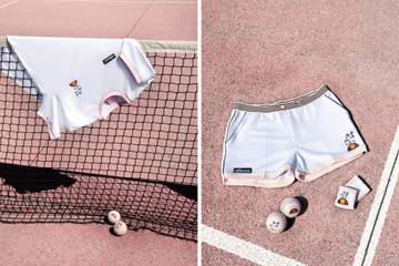 « Rosé » se veut un mélange de l’esprit tennis, les racines d’Ellesse, et du skate, les premières amours du peintre et graphiste français qui s’est fait connaitre avec ses personnages imaginaires, ses monstres gentils, les « Gus Gus ». Il sublime la culture du skate en détournant notamment des unes de magazines skates avec ses créatures oniriques et colorées et a également signé « Devoted », le premier documentaire sur les médias dédiés au skate. La capsule se compose d’un tee-shirt, d’un polo, d’un short et d’accessoires tels que des bracelets en éponge, un bob et des chaussette, façon tennisman.