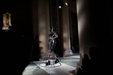 C'est une pièce fétiche de Dilara Findikoglu, créatrice turco-britannique qui met en scène des "Vénus sorties du chaos" dans des corsets en velours rouge sang, en cuir lacé ou couleur chair, aux allures de créatures mythologiques, fantomatiques ou vampires.