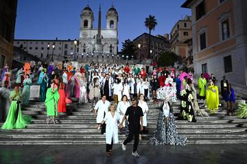 Plus de 100 looks ont défilé devant les 500 invités, presse, people - parmi lesquels l'actrice Anne Hathaway tout de rose vêtue, Anna Wintour, rédactrice en chef de l'édition américaine du magazine Vogue, ou la chanteuse Laura Pausini - mais aussi plus d'une centaine d'étudiants d'écoles de mode et d'art de Rome, invités pour l'occasion.