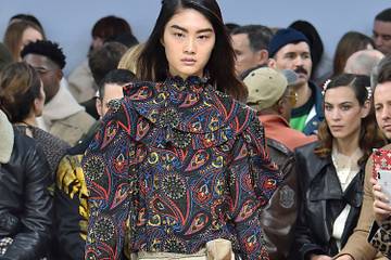 Ce sont donc des mannequins de deux sexes qui défilent pour une collection que le créateur a voulu tournée vers "l'optimisme". En témoignent des jupes et robes amples et confortables portées nonchalamment avec des sneakers à lacets blancs XXL ou des bottines en daim. Les femmes J.W. Anderson cultivent une élégance nostalgique: en grand amoureux des modes d'antan, le styliste puise dans l'insouciance des années folles avec des pièces inspirées des robes Charleston, ou dans l'utopie des sixties avec des hauts à motif Paisley portés sur des jupes asymétriques.