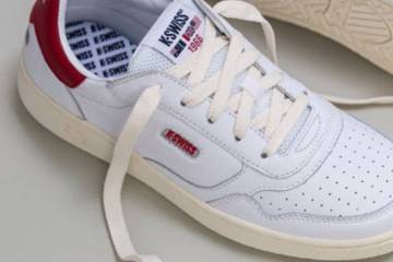 Les choses bougent dès à présent, sous l’impulsion d’une campagne intitulée “How We Move”. K-Swiss lance pour cet hiver sa première collection entièrement pensée dans son studio de design lyonnais. L’accent est mis sur le style originel de la griffe : le marquage à cinq bandes, les rivets et boucles en métal, les drapeaux des pays organisant les tournois de tennis du Grand Chelem. On retrouve aussi les inspirations tennis et streetwear nineties puisées dans les archives de la maison. Le tour réinterprété de façon contemporaine.