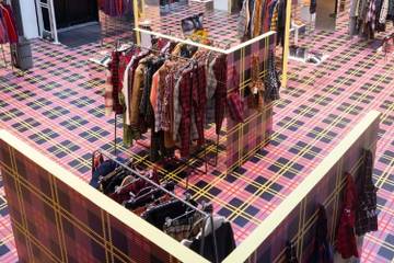 Original, le concept store parisien Merci choisit le tartan comme un motif d'exposition. Il faut dire, depuis le 3ème siècle le tartan a su évoluer. Connu sous le nom de Sett de Falkirk, le tissu était à l’origine composé de laines non teintes, blanches et marrons. En assimilant le travail du tartan à ses régions d'origine, en alliant les coloris entre-eux et en les mêlant au travail des matières selon des procédés de fabrication ancestraux chaque catégorie de tartan souligne un artisanat, une tradition.