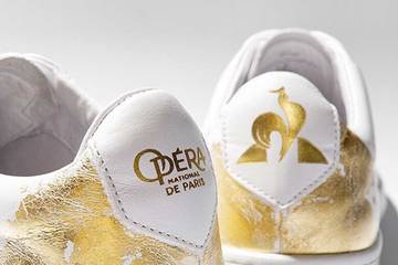 Devenu équipementier officiel des danseurs du Ballet et des élèves de l’Ecole de Danse de l’Opéra, le Coq Sportif propose un modèle inédit de sa Blazon dans un cuir lisse blanc aux motifs or sur le talon. Une esthétique directement inspirée de l’architecture unique du Palais Garnier.