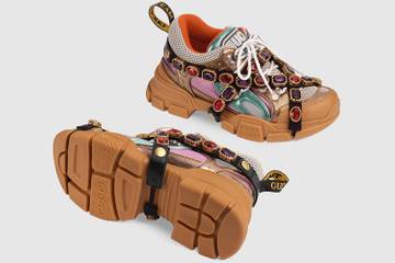 Le numéro deux sur la liste est beaucoup plus voyant. Les sneakers Flashtreck de Gucci sont également dotées d'une semelle à plateforme de grande taille (cinq centimètres). Ils sont ornés d'embellissements en cristal et d'un dessus en cuir métallique multicolore. Ces baskets se vendent à 1200 euros et ont comptabilisé 3 741 recherches en une seule semaine.