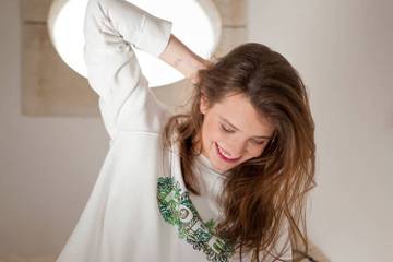 Elle propose un vestiaire féminin et complet (robes, vestes, combinaisons, tops, pantalons...) décliné dans des matières fraîches et agréables comme le Tencel (fabriqué à partir de pulpe d'eucalyptus), le coton bio, le lin, le polyester recyclé … Celles-ci se font de plus en plus nobles pour nous positionner sur un créneau dit “luxe accessible“. Il faut savoir que la matière est la clé d’entrée dans le développement de chaque nouvelle collection. Tout débute par là. Nous allons aussi développer l’accessoire autours de collaborations (chaussures, vernis à ongles, bijoux) à la façon d’un laboratoire. Des nouveautés vont arriver dès ce printemps.