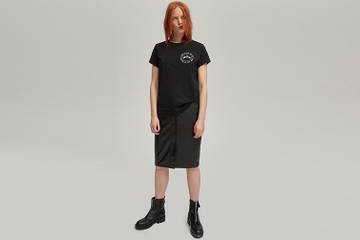 Commercialisée pour ce printemps, la capsule propose onze pièces, réalisée sans aucune matière animale (simili cuir à base de polyuréthane) et de coton durable. Elle se compose de basiques d’esprit rock et féminin, comme une combinaison, un pantalon en faux cuir, une robe à manches courtes, une jupe et une veste en similicuir. Boots, bottines à talon et sacs parachèvent la silhouette.