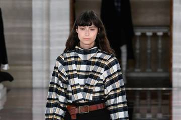 Robes fluides noires portées avec des bottes à plateforme que n'auraient pas renié ses anciennes comparses des Spice Girls, jupe-culotte à petits carreaux égayée par un pull jaune, robe pull col roulé avec des losanges découpés dans les manches: pour sa collection automne/hiver 2020/21, la créatrice explique avoir "réfléchi à la tension entre le raffinement et la rébellion".