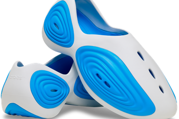 Bien différentes des sabots proposés par la marque, la Crocs Ripple a un design aérodynamique et des coussinets bleus devant et sur ses flancs. Le produit – lancé le 6 mars en France et vendu 89,99 euros – est entièrement moulé et censé être d'un grand confort, à l'instar des modèles phares de la marque.