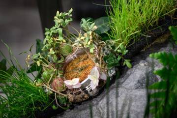 Cette montre mécanique est construite autour d'un boîtier en acier de 42 millimètres parsemé de mousses, cressons et minuscule echeverias. Son cadran est fabriqué à partir de pierres et lichens des Alpes tandis qu'un fin gazon pousse sur le bracelet, qui doit être entretenu à l'aide d'une mini-tondeuse.