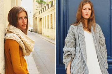 Visuels : écharpe Sully et Cardigan St Michel (01), pull Arcole (02), pull Art (03), turban Alma et beret Carrousel (04), collection automne-hiver 2018-2019 - We are knitters / © DR.