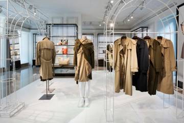 Boutique Burberry Faubourg : installation de trench coats revisités