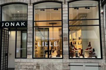 Sur la façade avant de la boutique, un message est inscrit : « Bonjour Lille » indiquant ainsi aux passants, l’arrivée récente de la marque. Un message diffusé aussi sur Linkedin où Jonak a annoncé ce nouvel emplacement. La boutique présente les collections de bottes, bottines et escarpins de la marque.