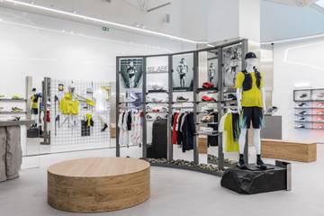 La boutique met à l’honneur la diversité de son offre, notamment composée de chaussures, de vêtements et d'équipements haut de gamme pour la course à pied et la randonnée. Elle dispose également un mur entièrement rempli de ses baskets signatures Sportstyle, qui figurent parmi ses modèles les plus demandés.