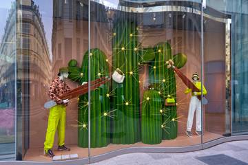 Côté Rivoli, des modèles épilent un cactus pour récupérer leurs produits préférés. Avant même d’entrer dans le magasin, le ton est donné : la nature est ici célébrée, avec tout ce qu’il faut pour la sublimer.