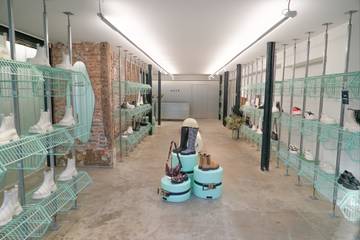 L’espace, d’une large superficie, a été imaginé en collaboration avec le studio de scénographie Atelier Craft. Il mêle différents matériaux tels que de l'acier et des briques anciennes, associés à des paniers en fil dans une teinte verte néon.