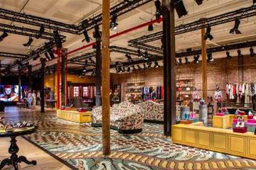 Le Gucci Wooster est installé dans un immeuble de 1863 classé monument historique, qui était auparavant une usine de crayons. Sur près de 930 mètres carrés, le design préserve l’intégrité de la structure d’origine et de nombreuses références historiques et culturelles ont été ajoutées.