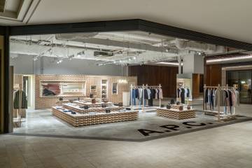 Dans un communiqué, A.P.C. indique avoir opté « pour un espace délibérément ouvert et brut, conçu comme une vitrine en bois et en béton, avec un mur spectaculaire composé de troncs légers empilés. » Une scénographie contemporaine qui met en valeur l’offre de la marque française.
