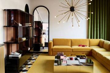 L'agencement et le design de l'espace ont été confiés à l'architecte India Mahdavi. Il témoigne d'une ambiance singulière autour d'un esprit particulièrement lifestyle, cosmopolite et raffiné. Les couleurs de l'appartement rappellent les nuances du velours et du cuivre, les sols en marbre évoquent l'atmosphère des palais italiens, et l’imposant comptoir du bar de l’entrée crée une ambiance chaleureuse.