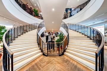 Autre facteur de charme, l’architecture intérieure qui, comme nous l’avions expliqué précédemment, se marie avec l’édifice de l’Opéra de Paris. Pour preuve, cet immense escalier central, qui évoque celui du Palais Garnier qui démarre au rez-de-chaussée (rayon hommes) et permet de monter au premier étage où sont positionnées les collections femmes, lingerie, enfants et bébés (nouveau segment). Il est doublé d’un autre (double) escalier, plus petit, qui raconte l’histoire du bâtiment, un ancien théâtre devenu Uniqlo Opéra.