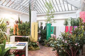 Un jardin en plein Paris, mi-serre tropicale mi-palmeraie en tous cas une oasis vivifiante. Pour ce format inédit de Texworld, baptisé Texworld Evolution - le Showroom, qui s’est ouvert le premier février pour la semaine, les directeurs artistiques Louis Gérin et Grégory Lamaud ont planté un décor à la mesure des espoirs de la filière : régénérant.