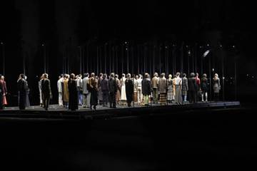 Glenn Martens s’est approprié l’espace avec un concept fort pour son défilé AW19. Le Grand Cloître était complètement plongé dans l'obscurité, des torches électriques ont été distribuées aux invités à l'entrée du site historique comme seule source d'éclairage.