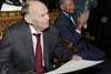 Photo : François Lesage, officier de la Légion d'Honneur et Maître d'art avec Frédéric Mitterand, au Ministère de la Culture, ce mercredi à Paris.
