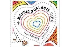 Cette année, c'est au tour de Maurizio Galante d'imaginer 2 timbres audacieux pour illustrer les cœurs griffés 2011. En laissant la liberté à l’acheteur de colorier à sa guise le timbre à 0,58 €, le timbre signé Maurizio Galante interroge la créativité de chacun, chacun devient l’auteur de son timbre.