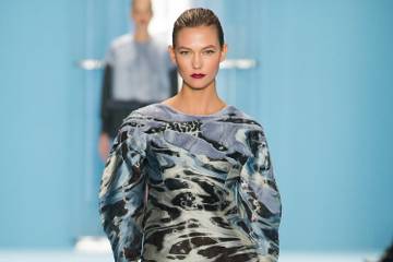 American supermodel Karlie Kloss opened and closed the show, which presented grays, blues and whites -- broken up with just a splash of red -- of suits for ladies who lunch, as well as cocktail and evening dresses. "I call this collection making waves. It's all about the elements of water," the Venezuelan-born designer told AFP, kicking off day five of New York Fashion Week.