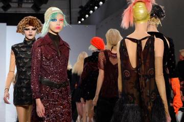 But the sight of models wearing dishwashing gloves and colourful lipstick worthy of clowns, and making furtive progress under squashed down hats left a mark on the fashion press.