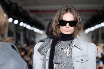 Denim still remained a defining factor, however. Floor-sweeping skirts and skinny low-waist jeans referenced the brand’s early 2000s identity, as did mini skirts with long trains and slouchy boyfriend silhouettes.