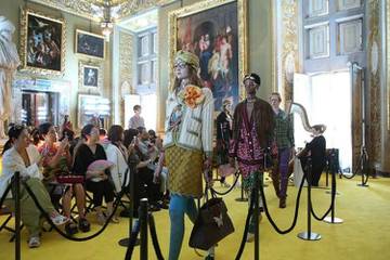 The show took place inside the Palatine Gallery of Palazzo Pitti in Florence, Italy, which first opened its doors to the public in 1833. The gallery is home to over 500 paintings, mostly from the Renaissance which served as the backdrop for the collection show. Michele admitted to the media that he originally wanted to host the show in the Parthenon in Athens, as the collection was inspired by ancient cultures. "At the beginning, everything started in the Mediterranean, the Greek, and Roman cultures," he said. "But we couldn’t have Athens, so I went to the next big step in civilization, the Renaissance."