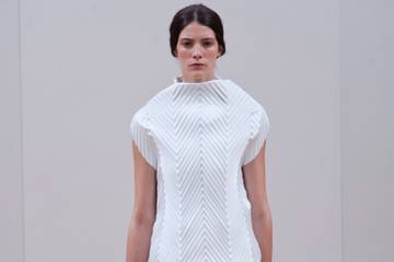 Woven cottons are treated with crisp qualities, offering a stiff fabric that holds its shape. Lending itself well to architectural silhouettes, wrap dresses resemble origami constructions, while wardrobe staples like tees and shirts take on a contemporary must-have status. For a minimal S/S15 statement, look to layer coordinated garments.