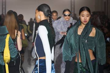 To start the presentation off, the team shared the top three colours that will define the season, each of which were contrasting shades alongside one another. ‘Edgy Khaki’, for example, was influenced by urban design bringing a pragmatic touch to the curation, conflicting with ‘Cherry Pop’, described by Peclers as a “fleshy red” and mirroring a retro vision of the future. Meanwhile, ‘Tech Sensitive’ was linked to nude tones that came with a “tech effect” and provided a non-binary colour choice for the season.