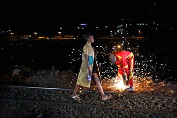 Nairobi (Kenya) - For the first Kibera Fashion Week held in Nairobi this week a catwalk was created on the east Africa railway line. The open-air catwalk was illuminated by a welding flash. Several local start-up artists featured a variety of their designs at Nairobi's largest slum, Kibera on November 11, 2022.